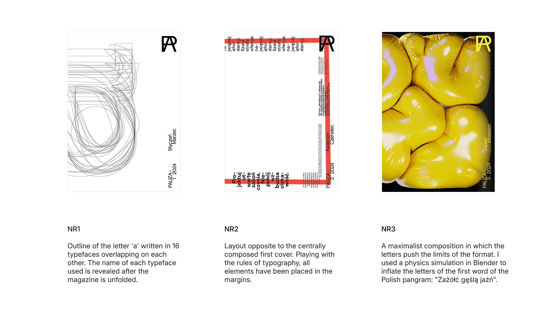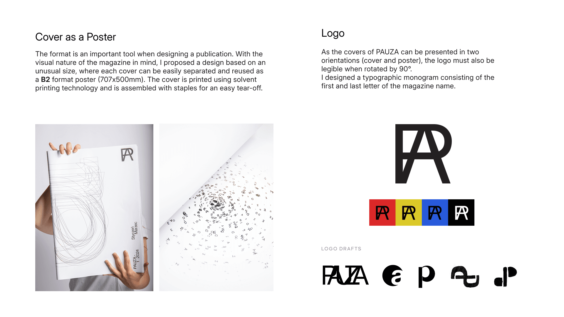 A series of covers for the typographic magazine PAUZA. I designed the visual identity including the logo and a series of the first three covers of the quarterly magazine. PAUZA is a magazine of strong visual impact. It is based on providing inspiration, promoting good design practices and a general visual culture.